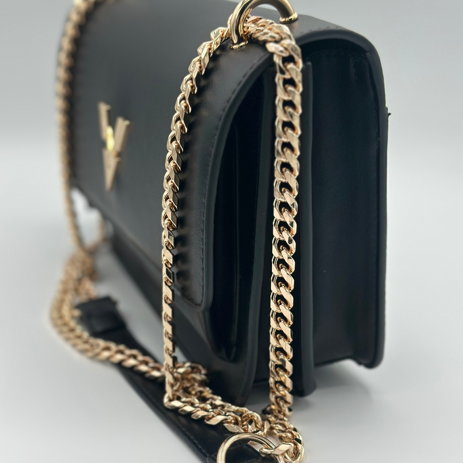 Say hello to the Chantay Crossbody – your new must-have! With its sleek black-colored vegan leather and luxe gold hardware, this bag is all about chic, understated style. Perfect for on-the-go days or nights out, the compact design keeps you hands-free while still carrying all your essentials.
