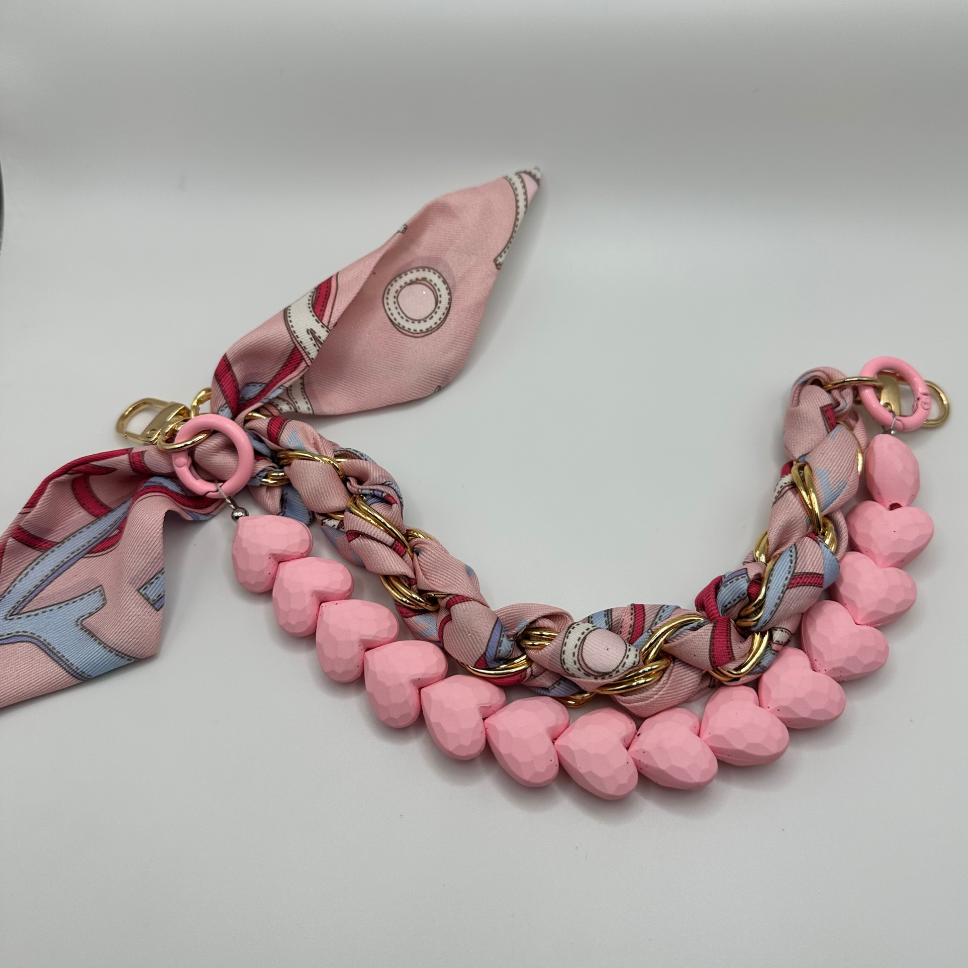 Elevate your handbag with the Blush Heart Luxe Purse Charm, a statement accessory designed for the modern woman who loves elegance with a touch of playfulness. This handcrafted charm features a beautifully braided silk-inspired scarf intertwined with a gold-tone chain, exuding a chic and sophisticated vibe.